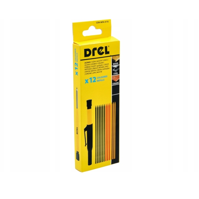 DREL mehanička olovka s šiljilom – 12 rezervnih umetaka 6crni+3žuta+3crvena