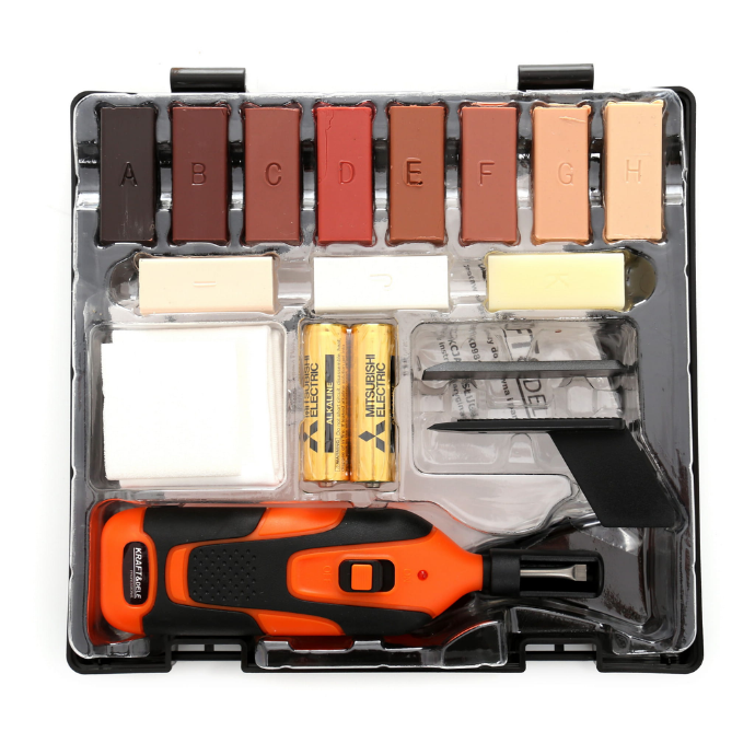 Komplet za popravak drveta dizajniran je za jednostavan popravak parketa, laminata, pluta, drva i sintetičkih površina topljenjem odgovarajućeg voska.