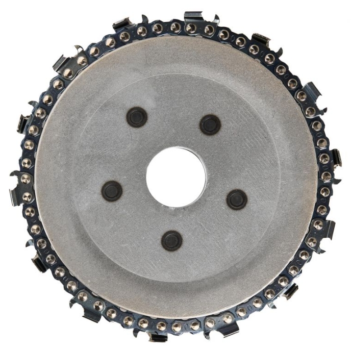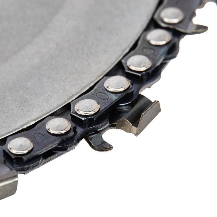 Rezni lanac oko oboda diska minimizira rizik od zaglavljivanja diska u materijalu koji se reže.