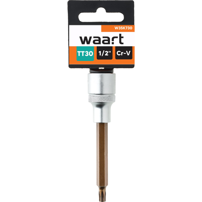 Torx nastavak na 1/2″ nasadnom ključu 55 i 100mm dužine. Od visokokvalitetnog legiranog čelika (krom i vanadij). Šesterokutni dio je od visokokvalitetne S2 legure čelika. Kvaliteta i pouzdanost su potvrđene međunarodnim TÜV certifikatom. Brand WAART udovoljava svim zahtjevima profesionalnih majstora.