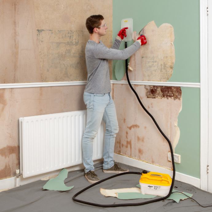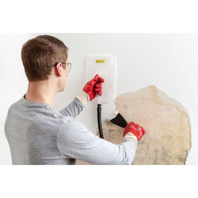 Uređaj skida tapete ravnomjernim ispuštanjem pare, bez potrebe za kemikalijama. Dugo vrijeme ispuštanja pare omogućuje obradu velikih površina bez prekida tijekom rada.