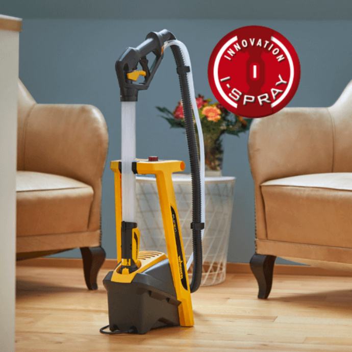 Izvlači boju ravno iz posude s bojom kroz crijevo do vrha koplja odakle savršeno prekriva zid. Čini nanošenje boje lakšim i bržim nego ikad prije.Wagner W950 omogućuje brzo i jednostavno bojanje zidova, stropova i elemenata od drva i metala. Nizak radni tlak omogućuje smanjenje kontaminacije tijekom rada.