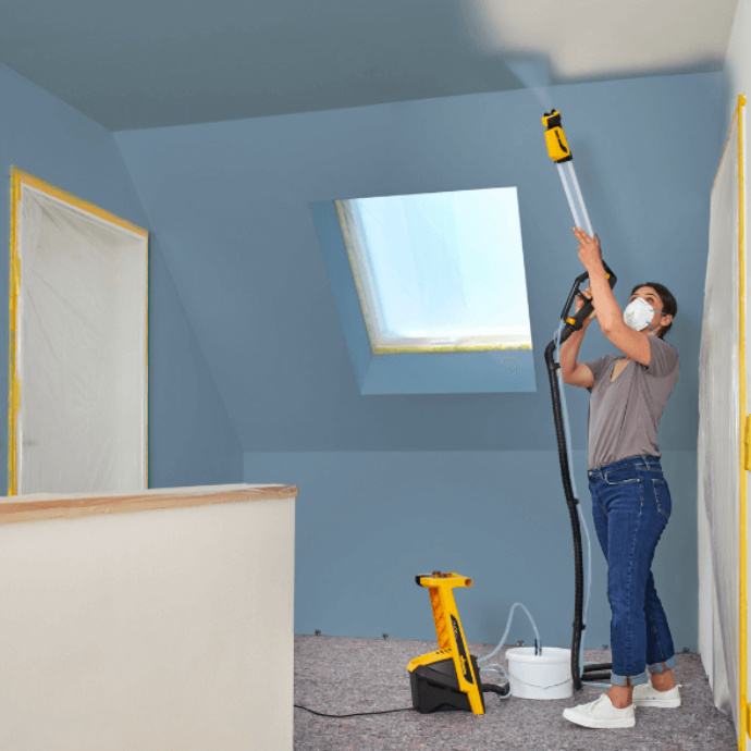 – Rad bez umora na visokim zidovima i stropovima, s velikim radijusom djelovanja zahvaljujući praktičnoj cijevi za prskanje