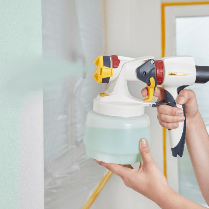 W 450 ne samo da vam omogućuje ponovno prskanje zidova mnogo brže nego korištenjem četke ili valjka, već se također može uhvatiti u koštac s kutovima i rubovima bez potrebe za rezom četkom. Također možete precizno raspršiti oko vrata i prozora jer su mlaz boje i količina boje potpuno podesivi. Patentirana I-Spray mlaznica koristi vrlo fino raspršivanje za postizanje izvrsne pokrivenosti jednim slojem, za brze savršene rezultate. Kada je posao završen, pištolj se može lako odvojiti za brzo čišćenje sustava. .